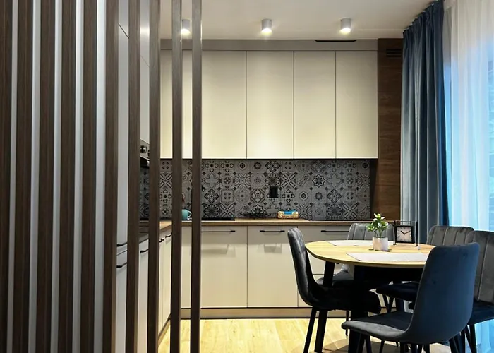 Mit Waschmaschine ausgestattet, bietet diese Apartments Wohnbereich, einen Balkon und eine Terrasse mit Blick auf den Garten. Für Ihren Komfort stehen Ihnen im Apartament Centrum Park 654 eine getrennte Toilette und eine Dusche zur Verfügung. Darüber hinaus gibt es im Badezimmer einen Haartrockner, kostenlose Toilettenartikel und Handtücher.